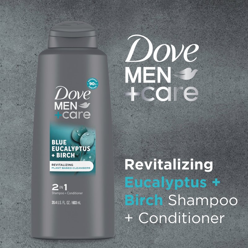 DOVE MEN + CARE Men 2 in 1 Shampoo and Conditioner Eucalyptus + Birch for Healthy-Looking Hair Naturally Derived Plant Based Cleansers 20.4 oz