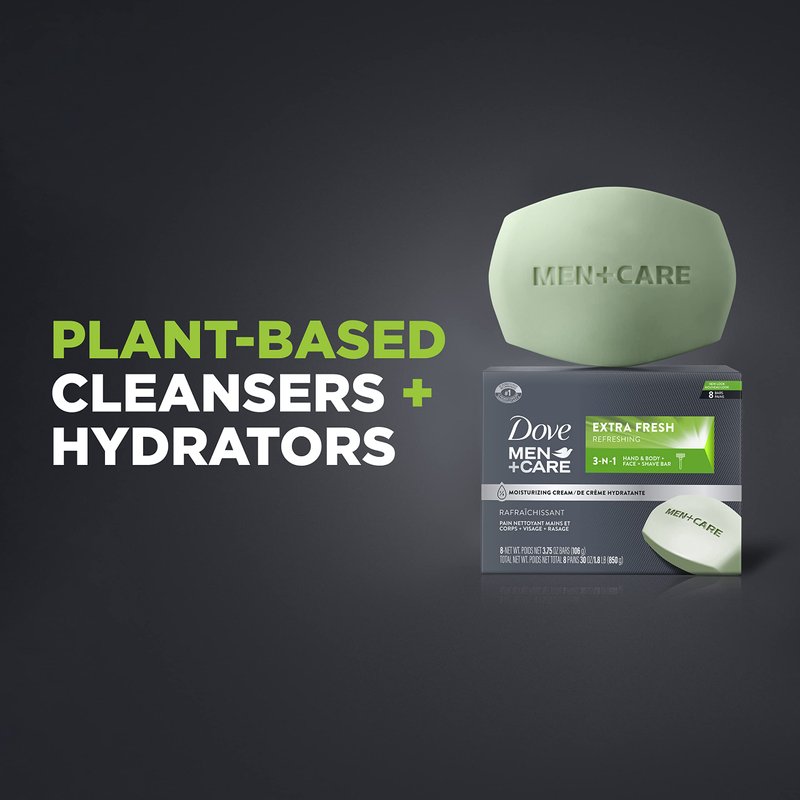 - 3 IN 1 FOR BAR CLEANSER FOR BODY, FACE, AND SHAVING: Dove Men+Care Extra Fresh Body and Face bar formulation is so hydrating and gentle on skin that you can also use it to wash your face or to shave