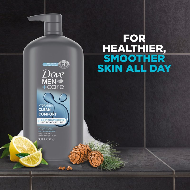 Dove Men+Care Body and Face Wash Hydrating Clean Comfort Body Wash for Men with 24-Hour Nourishing Micromoisture Technology, 30 oz