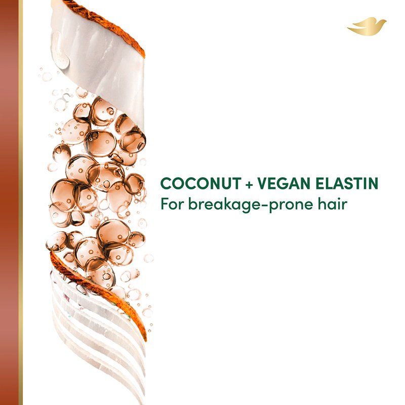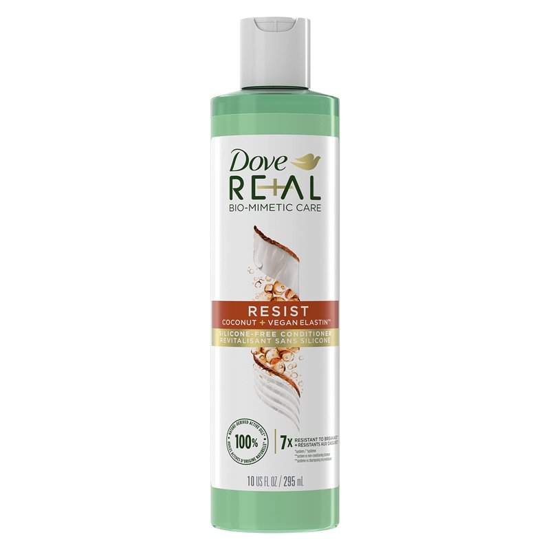 - FOR BREAKAGE-PRONE HAIR: Beautiful, strong, and healthy-looking hair is just a wash away; this Dove RE+AL Bio-Mimetic Resist Coconut + Vegan Elastin Conditioner strengthens and nourishes breakage-prone hair