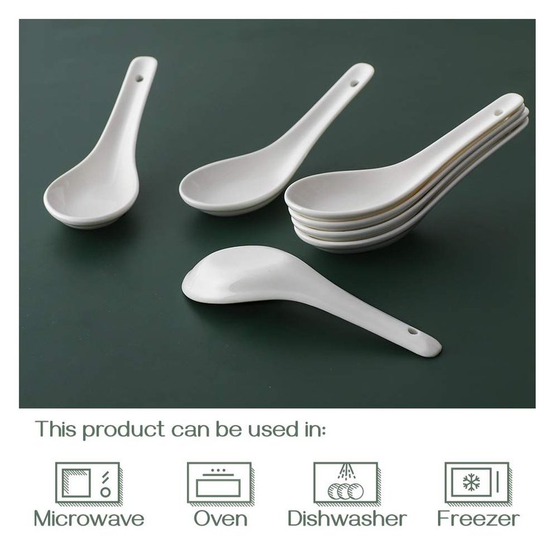 - Practical: These tasting spoons have a dimension of 5.3"L x 1.8"W, making them great for soup, wonton, pho, miso, ramen, cereal, dips, condiments, chili, and small bite-sized foods. Made of a type of premium ceramic, these spoons are also dishwasher, microwave, oven, and refrigerator safe.