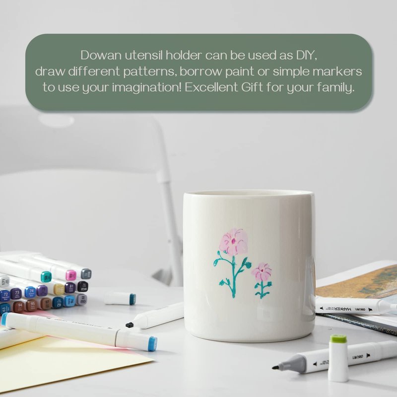 - Versatile and DIY. 1. This is an elegant white utensil holder that can be matched with any style of furniture and is suitable for various occasions. 2. You can give full play to your imagination, adding colors or patterns to the jar, and painting it as you want. It is multifunctional, not only as a kitchen storage jar, but also as a vase, flower platter, pen holder, snack jar, sundries storage jar, etc.
