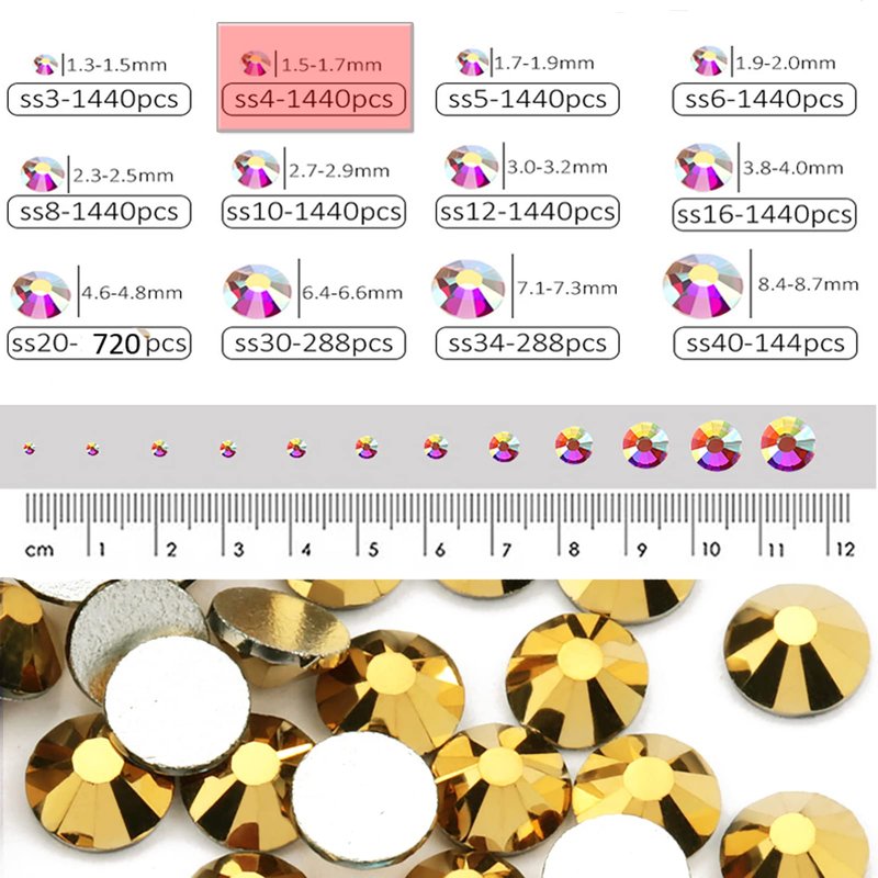- ▲ Size and Quantity: These SS4 flatback rhinestones are tiny, with diameter 1.5mm, you will receive 1440Pieces. They are swarovski alternative premium quality flatback rhinestones, ideal for nail art.