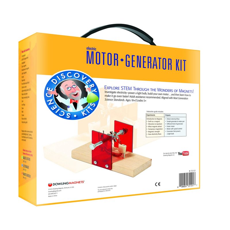 Dowling Magnets Science Discovery Kit: Electric Motor Generator. Science Experiments/Science Lab/Engineering Kit/STEM Kit/Physics for Kids and Teens/Electric Generator Kit. Item 731101.