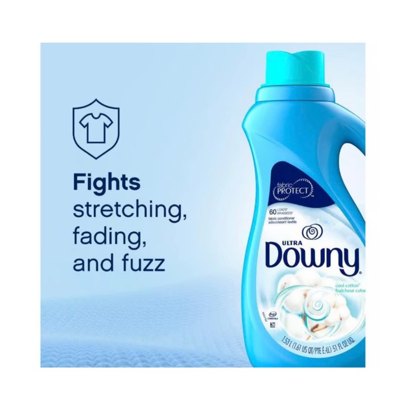 Downy Fabric Softener Cool Cotton 10 Oz Travel Size Fabric Conditioner, Cool Cotton 12 loads (medium loads). HE compatible. Instructions Shake it! For medium loads, dose to bottom line. For larger loads, dose to top line. Pour into fabric softener dispenser. For center agitator, top off with water. Store at room temperature. Ingredients Include Biodegradable Fabric Softening Agents (Cationic).