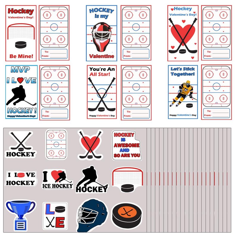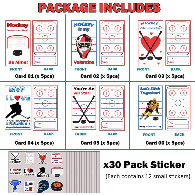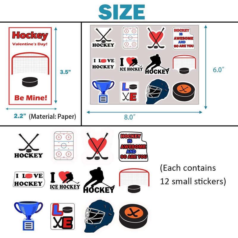 - 5.Package Includes: 30pcs hockey theme valentines cards + 30pcs hockey big sticker(every big sticker includes 12pcs small sticker).