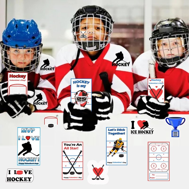DQFAQYY Hockey Themed Valentine's Day Cards with Sticker, 30 Pack Valentines Day Gifts for Kids School Classroom Gift Exchange, Valentine Party Favor Supplies