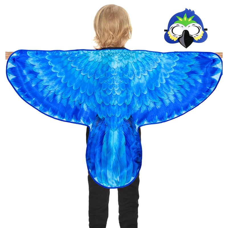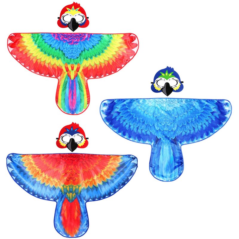 D.Q.Z Bird-Wings-Costumes for Kids with Bird Masks, 3 Pack Eagle Owl Wings for Boys Girls Halloween Dress Up Party Supplies (Parrot)