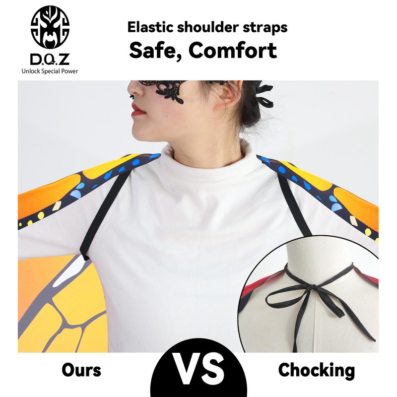 - ➤【Security and Comfort】- New Design, our rainbow butterfly wings for kids, secured with straps at the shoulders and loops at the wrists, free children's hand, more comfortable and Soft wearing.