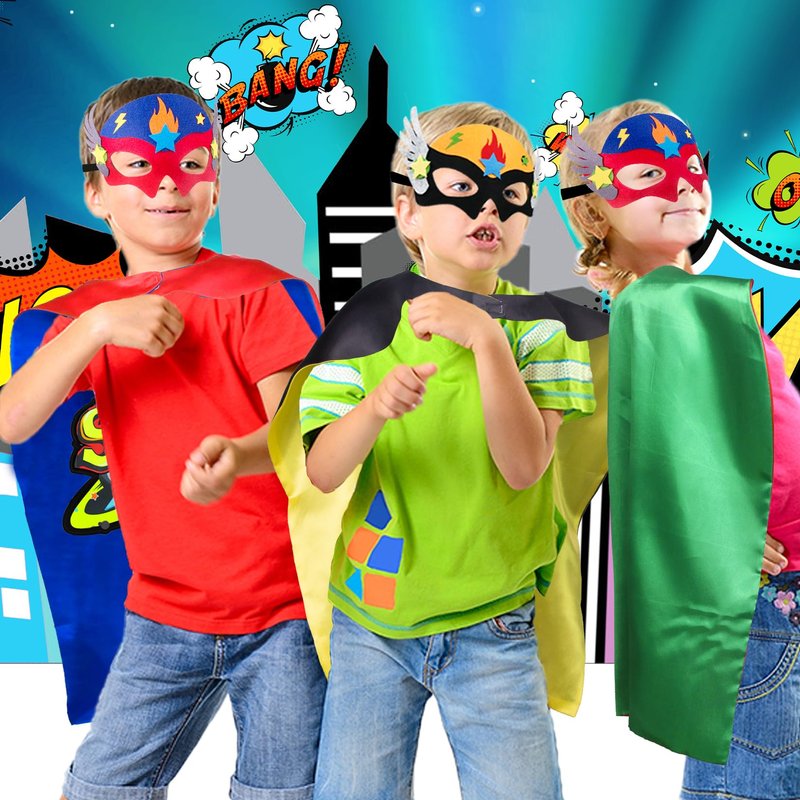 - Best Choice: Superhero cape and mask Set as a symbol of Superhero, perfect for School Program, Superhero Day, Birthday Dressing up Party, Camp, Halloween, Xmas, also as a perfect gifts to the little superhero.Whether it's party time, play time or trick-or-treat time, your kids will love the feeling of this wonderful superhero cape blowing in the wind.
