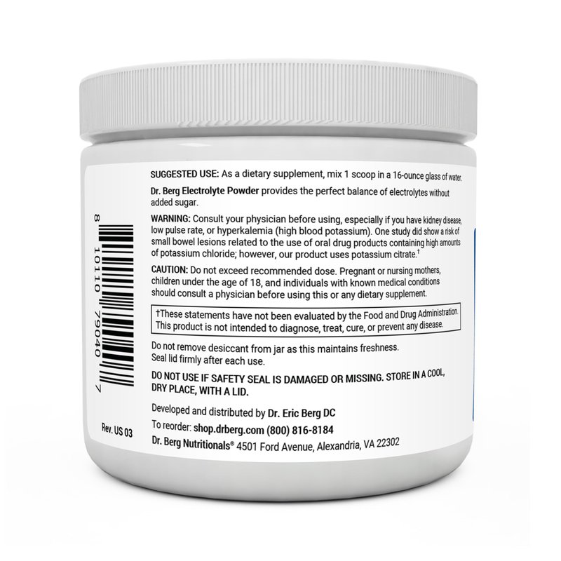 Dr. Berg's Original Keto Electrolytes Powder (50 Servings) - Sugar Free Electrolyte Powder - No Maltodextrin - Hydration Powder - Strawberry & Lemonade Flavor ๐๐ข๐ก๐ง๐๐๐ก๐ฆ ๐ ๐ข๐ฅ๐ ๐ฃ๐ข๐ง๐๐ฆ๐ฆ๐๐จ๐ ๐๐ก๐ ๐๐๐๐๐ง๐ฅ๐ข๐๐ฌ๐ง๐๐ฆ - This powder contains 13 times more potassium than common sports drinks to help you avoid symptoms like weakness, fatigue, constipation, sugar cravings and restlessness before sleep. Support your potassium levels without eating massive amounts of vegetables every day. ๐ญ๐๐ฅ๐ข ๐ฆ๐จ๐๐๐ฅ ๐๐ก๐ ๐ ๐๐๐ง๐ข๐๐๐ซ๐ง๐ฅ๐๐ก - Dr. Bergโs electrolyte powder is designed to only give your body the substances that support you and your energy levels, all while keeping you in ketosis. No added sugars, carbs or maltodextrin. ๐ฃ๐ข๐ช๐๐ฅ ๐จ๐ฃ ๐ฌ?๐จ๐ฅ ๐ฃ๐๐ฅ๐๐ข๐ฅ๐ ๐๐ก๐๐ - Shift your athletic endurance into higher gear! Electrolyte Powder helps you get ready for your next game or workout by replenishing and rejuvenating your cellular energy and providing needed hydration. It also helps restore your electrolyte balance and promotes energy recovery. ๐ฅ๐๐๐ฌ๐๐ฅ๐๐ง๐ ๐ฌ๐ข๐จ๐ฅ ๐๐๐๐๐ฆ - Packed with 3 times more potassium for fast hydration, this unique formula alleviates muscle cramps and supports optimal muscle and nerve function. This electrifying combination supports energy levels all day long, from your tiniest cells to your full body. ๐๐ข๐ ๐ ๐๐ง๐ง๐๐ ๐ง๐ข ๐ฆ๐๐ง๐๐ฆ๐๐๐๐ง๐๐ข๐ก - If for any reason you're not happy with the results you experience within the first 30 days, weโre happy to give you a refund! Simply send us a message. The refund will be processed as long as it is requested within 30 days of purchase. There is no need to return the product to us!