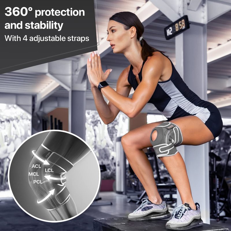 - TARGETED KNEE STABILIZATION, RELIEF & MAXIMUM SUPPORT : Comprised of upgraded patella gel pads, double side stabilizers that fit snugly around your knee joint, non-slip silicone strips, and high elastic fabric to avoid sliding and tumbling during daily use and exercise.