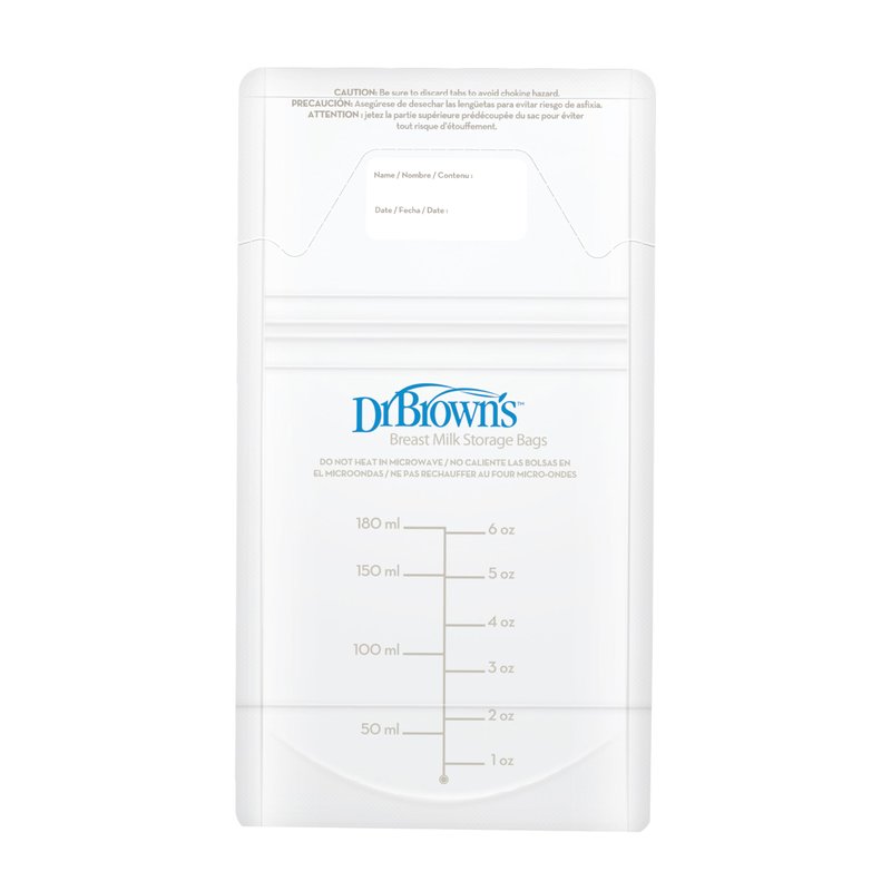 Dr. Brown’s Breast Milk Storage Bags, Disposable and Durable Bags for Freezing & Heating Breast Milk, (100 ct) 6 oz Bags, BPA free