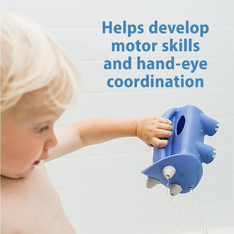 - BABY WATERING CAN BATH TOY. The adorable triceratops bath toy is durable, lightweight, and designed for small hands so your little one can easily fill, pour, and play.