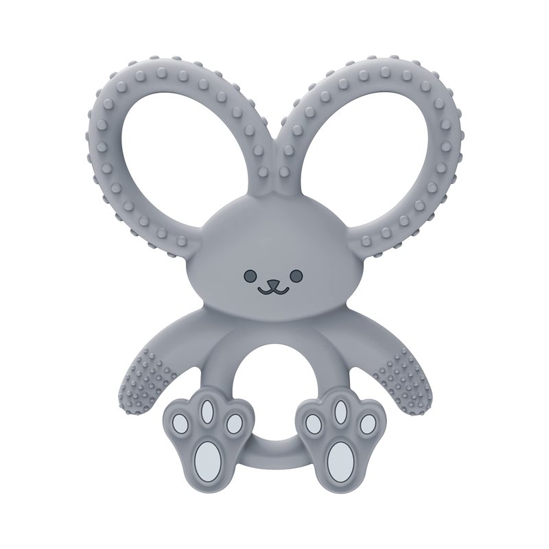 Dr. Brown's Flexees Gray Bunny, Soft 100% Silicone Baby Teether, BPA Free, 3m+