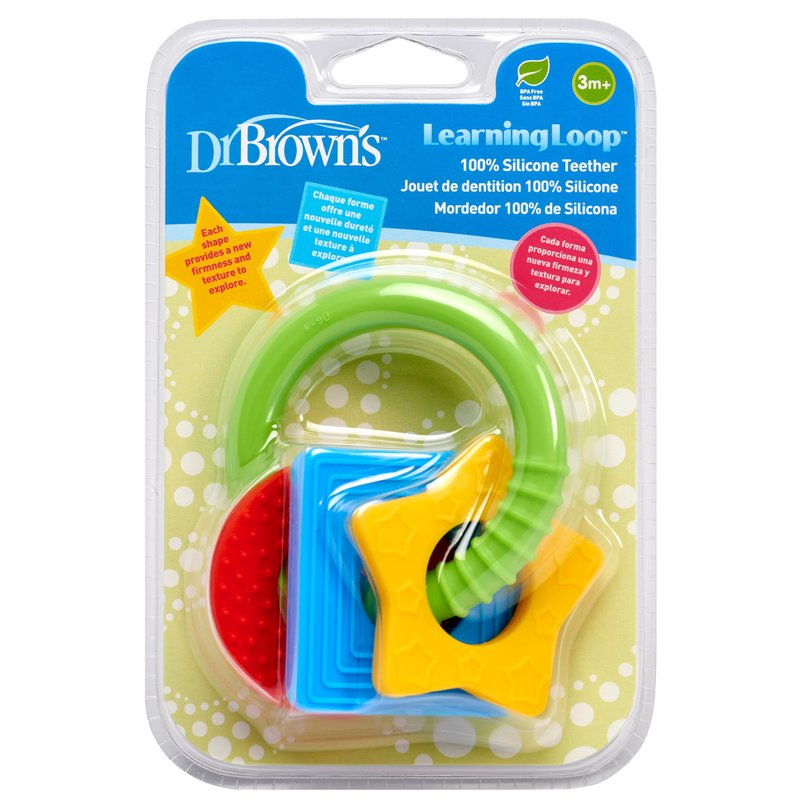 Dr. Brown's Learning Loop, Baby Teether Ring with Multiple Shapes & Textures, Soft 100% Silicone, BPA Free, 3m+