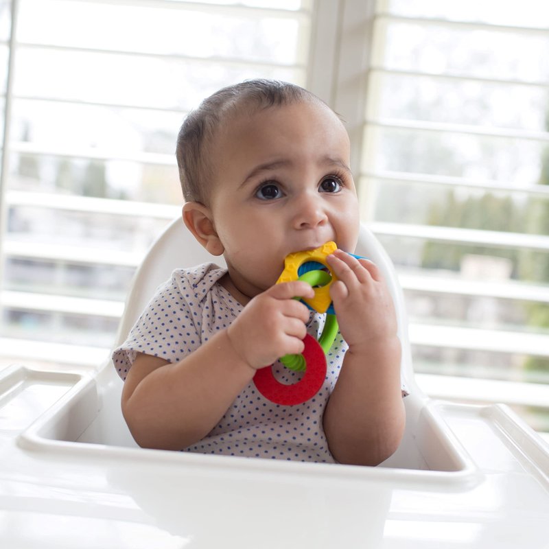 - 100% silicone for easy grip with attention-grabbing colors. Lightweight design for on-the-go teething relief