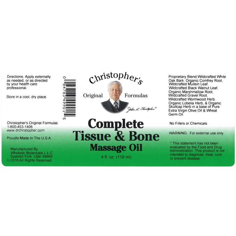 - Complete Tissue Bone by Dr. Christopher 4 oz Liquid A great therapeutic massage oil made from Dr Christophers famous BF C formula containing over 10 synergistic herbs