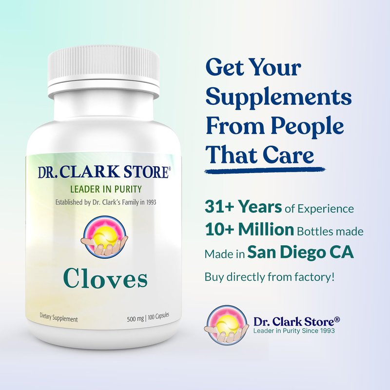 Dr Clark Cloves Healthcare Supplement - Natural Digestive Health, 500 mg, 100 Pure Gelatin Capsules