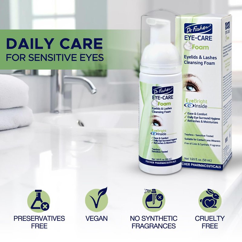- FOR THOSE TIMES WHEN YOU SUFFER FROM EYE CONDITIONS such as inflammations, dry eyes, and blepharitis. It can be very distressing. Luckily, you can easily relieve the symptoms with Dr. Fischer’s Eye-Care Foam and get a better feeling and a better appearance.