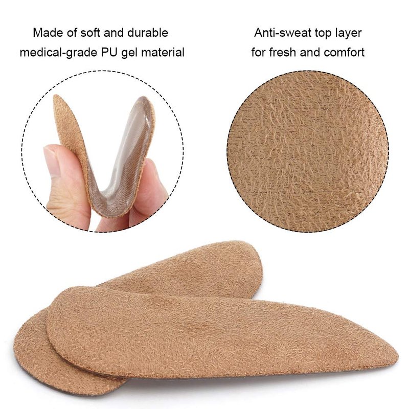 - MATERIAL: Made of durable and soft PU gel material with sweat wicking, anti slip top layer, and it has strong self-adhesive backing so they will stay in place while allowing for repositioning inside your shoes or trim-to-fit.