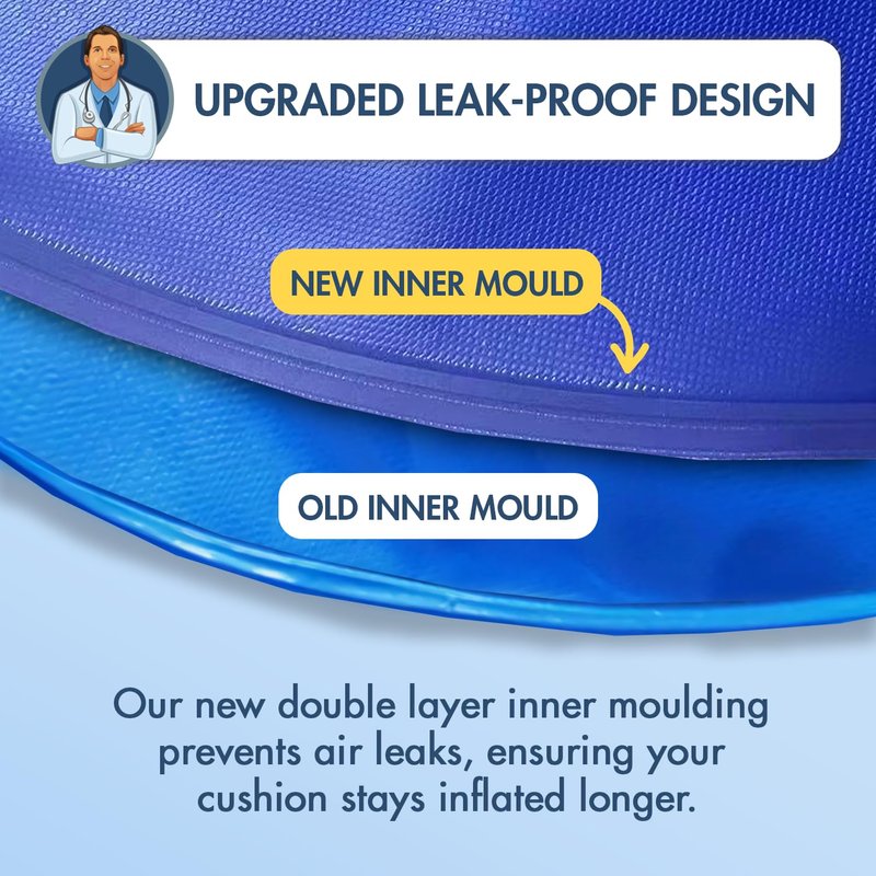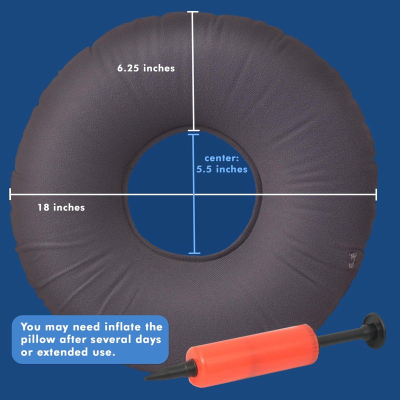 - Easy To Inflate And Adjust: Our Donut Cushion comes with a small hand air pump, to make inflation a breeze! We don’t think you should struggle to inflate your cushion, or fight shortness of breath when you’re already fighting pain. Our donut pillow is easy to inflate, and will be ready for use in minutes. We recommend playing with the amount of inflation to find your desired level of firmness and comfort.
