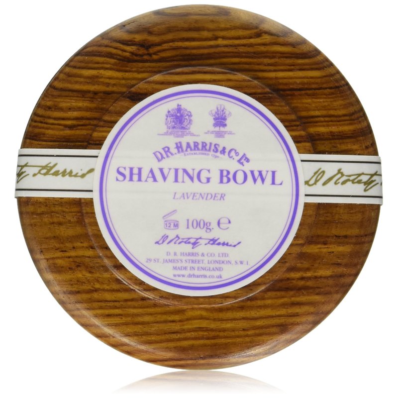 D.R. Harris Lavender Hard Shaving Soap in Mahogany Wood Bowl
