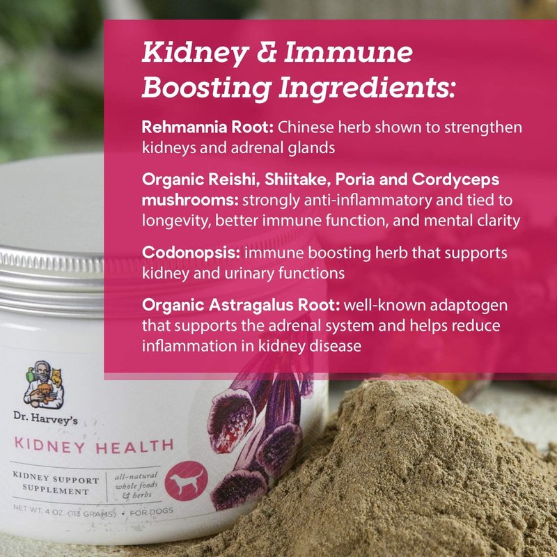 - Herbal and mushroom whole food supplement designed to help support your dog’s kidneys. All natural, with NO synthetic ingredients.
