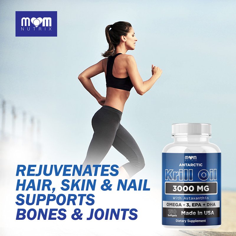 MOM NUTRIX omega 3 krill oil is simply the best one available with MAXIMUM STRENGTH of EPA and DHA. The unique blend with phospholipids and astaxanthin ensures maximum absorption and additional health benefits.