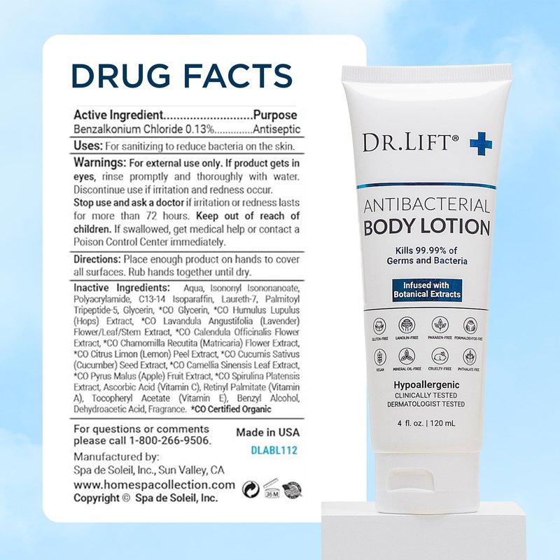 - ONE-OF-A-KIND: Dr. Lift Antibacterial Body Lotion is specially formulated to kill germs and bacteria, while moisturizing.