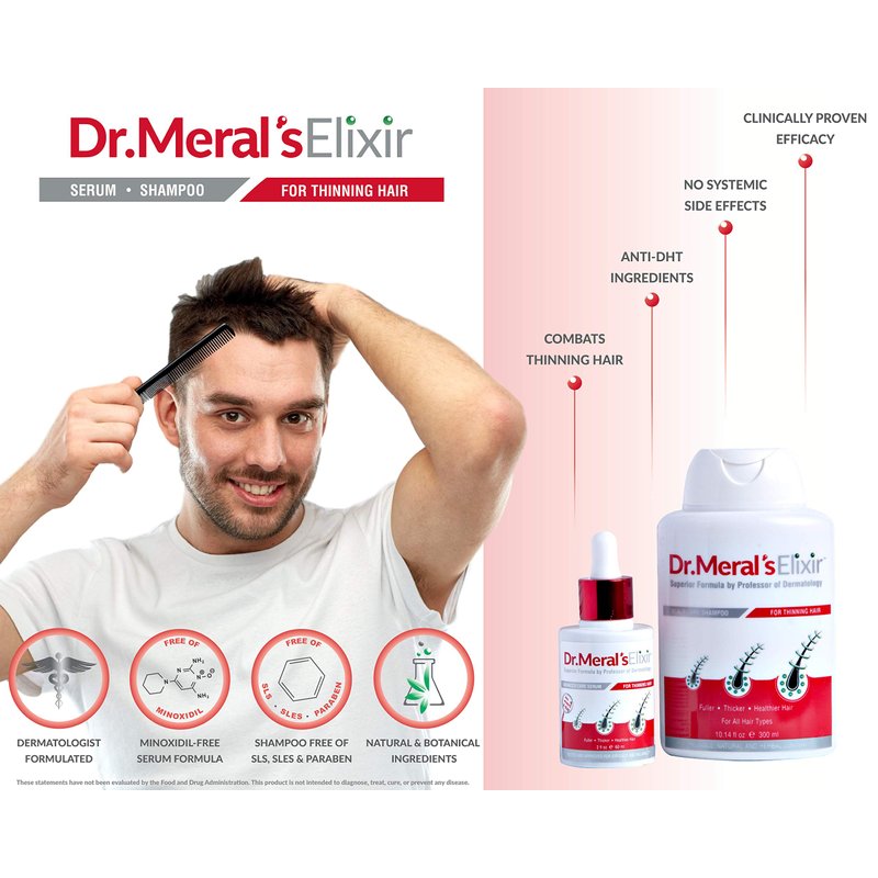 Dr. Meral's Elixir - Essential Hair Growth Products Kit: Minoxidil Free Thinning Hair Serum with Saw Palmetto & Sodium Lauryl Sulfate Free Shampoo for Hair Loss - DHT Blocker, Stimulates Hair Regrowth