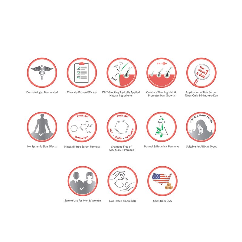 - CLINICALLY PROVEN: Results of our DRUG-FREE thinning hair products have been proven clinically & by in-vitro lab tests made in France. You'll stop hair loss and notice new & thicker hair growth in 3-4 months with regular use of our hair treatment kit