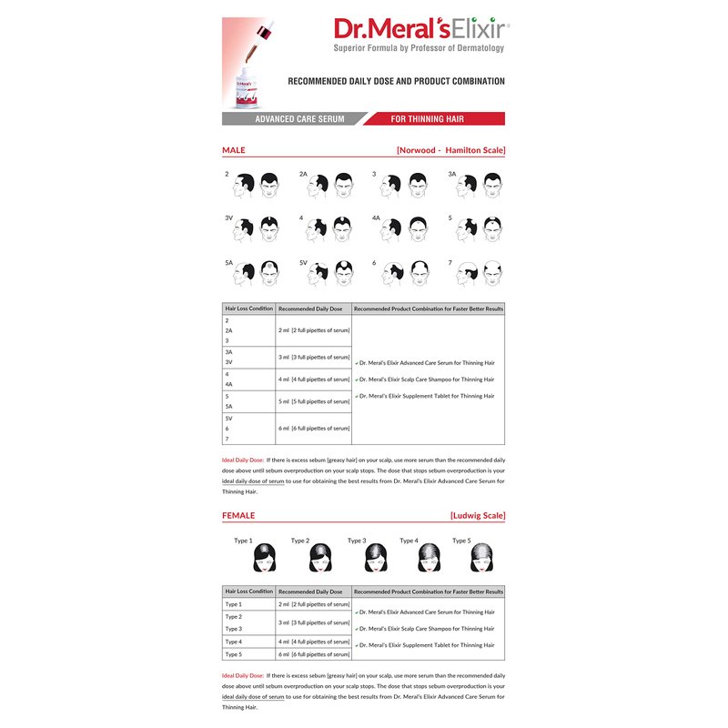 Thinning Hair can be controlled and reversed! Our 2 STEP Topical Treatment Regimen for Hair Loss is a surefire way to have thicker and fuller hair. Hair loss prevention is a simple matter of science for Dr. Meral’s Elixir developed by dermatologist Prof. Meral Sasoglu, MD.