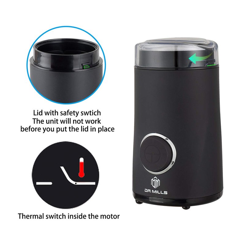 DR MILLS DM-7441 Coffee Grinder Electric,Coffee Bean Grinder,Spice Grinder,Blade & cup made with SUS304 stianlees steel (Black)