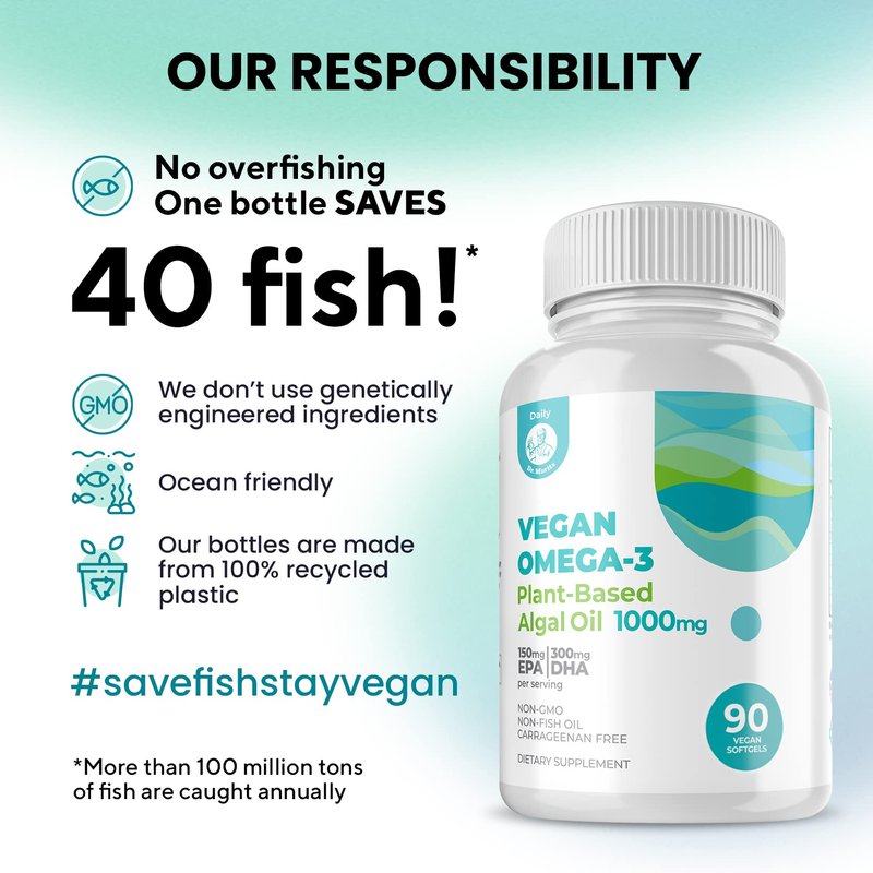 - Get all the benefits of omega-3 straight from the source with this vegan, algae Omega 3 supplement without any fish content or fishy aftertaste
