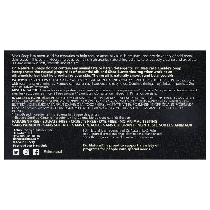 Dr. Natural Black Bar Soap, 2 pcs - Ultra-Moisturizing Natural Soap with Shea Butter - Safe for Family and Pets - Helps Reduce Acne and Blemishes - Organic Bar Soap for Hands, Body Wash, Laundry