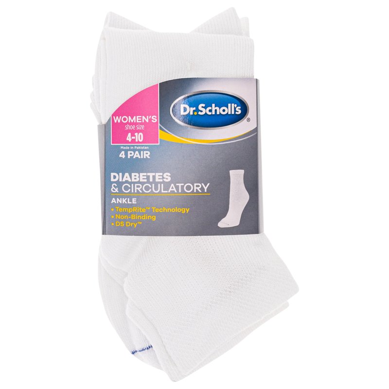 Dr. Scholl's Women's 4 Pack Diabetic and Circulatory Non Binding Ankle Socks, White, Shoe Size: 8-12