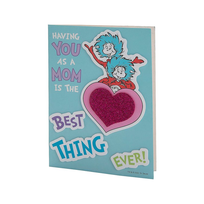 - Help kids show their moms they’re the best ever with this easy craft kit! Featuring a fun design with iconic Dr. Seuss characters, Thing 1 and Thing 2, these cards are perfect gifts for Mother’s Day. Kids will have a blast assembling this craft and can write a special message or draw a picture on the inside. This is a great Mother’s Day craft activity for the classroom or daycare. Includes self-adhesive foam pieces and cardstock. 5" x 7" Makes 12. All craft kit pieces are pre-packaged for indivi