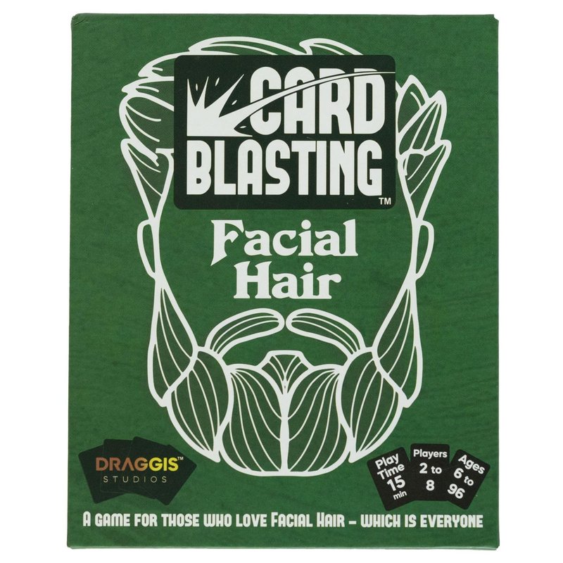 Card Blasting Facial Hair is a first edition game by Draggis Studios. Play cards equal to or above the previous card or pick up the discard pile. Blast the discard pile and play again. Disguise your play whenever you like by playing your card face down and make people guess if you are lying or not. Don't be the last player with cards in your hand or you lose! Enjoy the fun beard humor. If you are looking for adult, kids, or teen gifts, this is a great choice this holiday season.