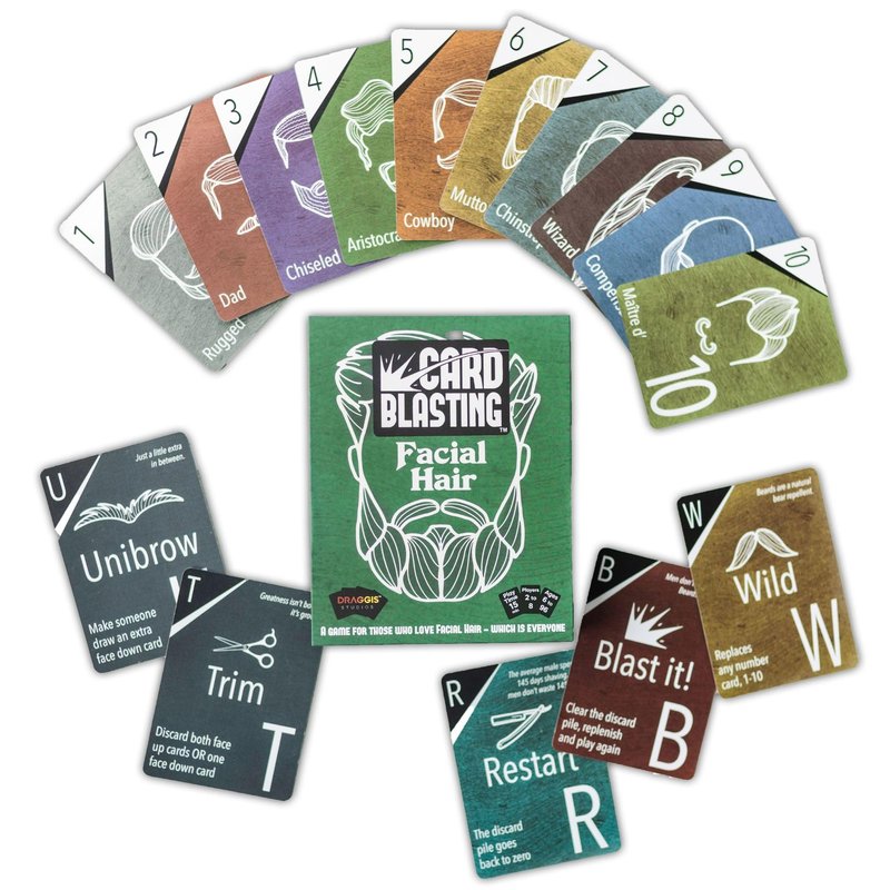 Draggis Studios Card Blasting Facial Hair Card Games for Family Game Night | Great Birthday Gift for Dad, Grandpa, Big Brother, or Boyfriend | Adults, Teens & Kids Ages 6+