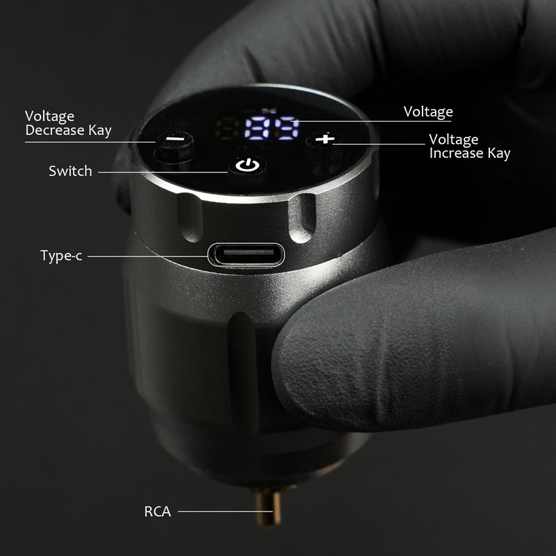 - ✨【1500mAh Wireless Tattoo Battery】Equipped with a high-quality 1500mAh lithium battery, this MC-W1 tattoo power supply delivers reliable performance. The working voltage, adjustable from 4-12V with ±0.1V precision, ensures optimal control. Benefit from fast charging capabilities, reaching a full state in just 2-3 hrs. The LED screen displays essential information, including working voltage, working time, and remaining power.