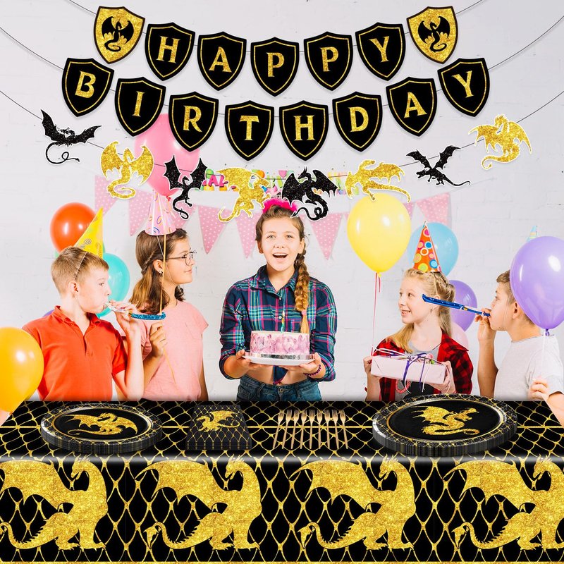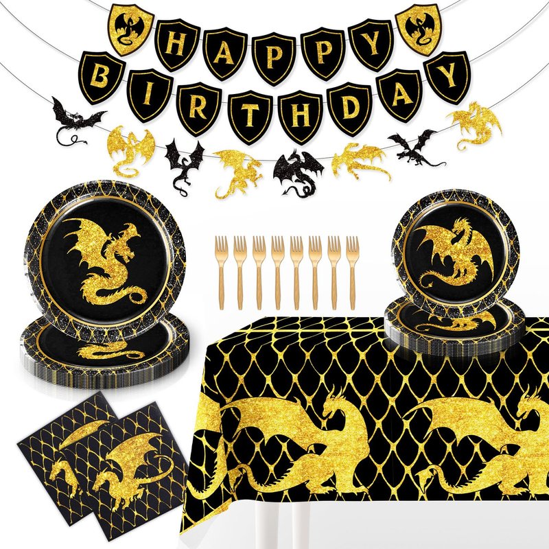 Dragon Birthday Party Decorations,Dragon Party Decorations,Dragon Birthday Party Supplies,Include Banner Tablecloth Plates Napkins Forks
