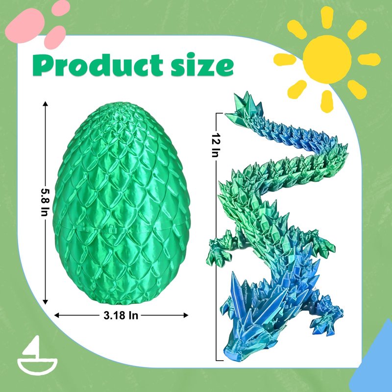 - Perfect Size: At 5 inches for the dragon egg and 12 inches for the 3D printed dragon, they're just the right size to sprinkle some magic in any room! ✨
