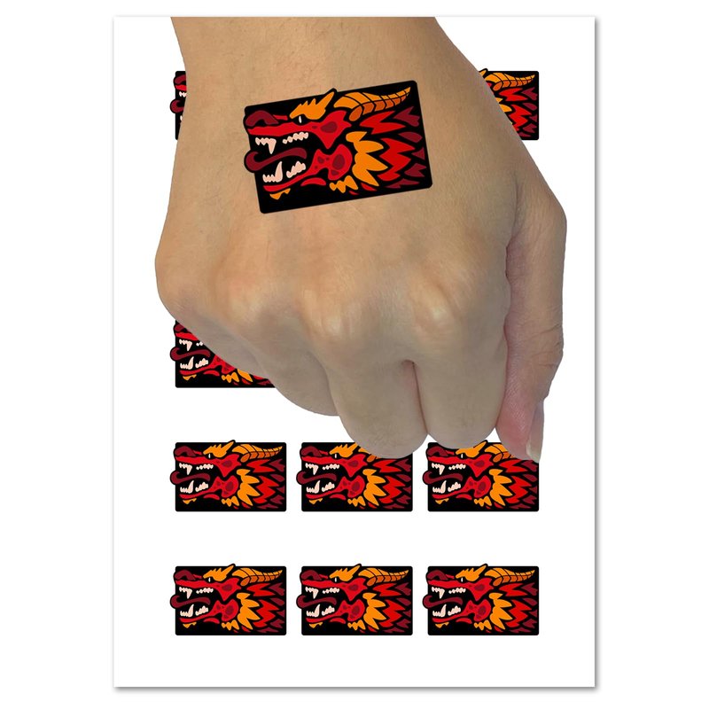 Dragon Head Side View with Tongue Out Temporary Tattoo Water Resistant Fake Body Art Set Collection - 54 1" Tattoos (1 Sheet)