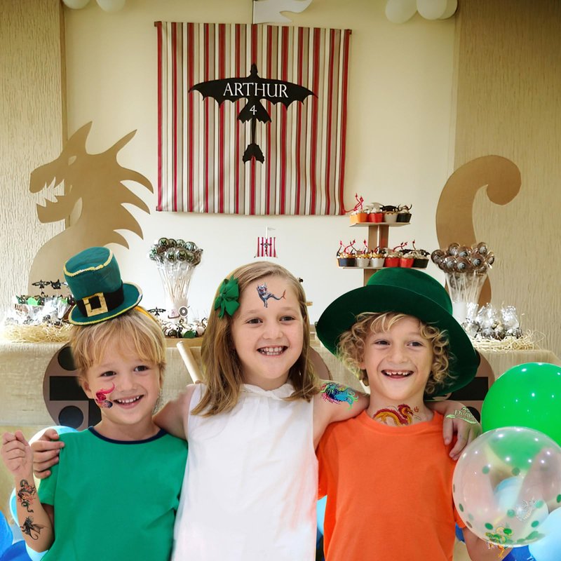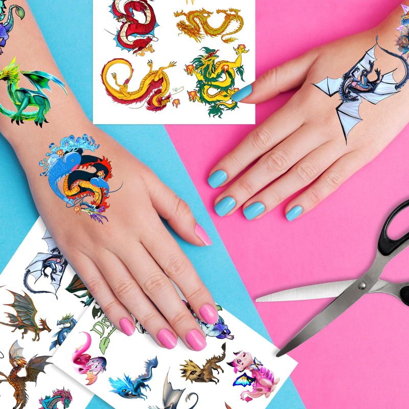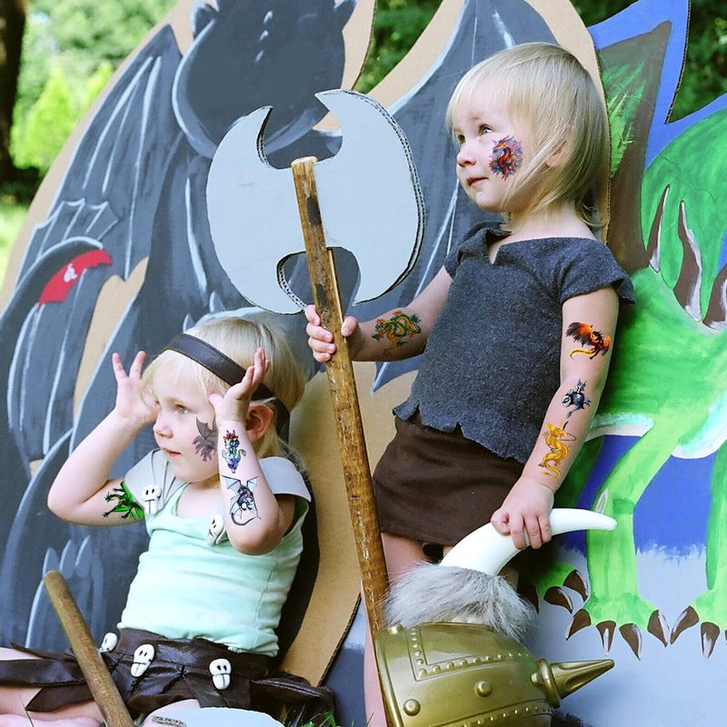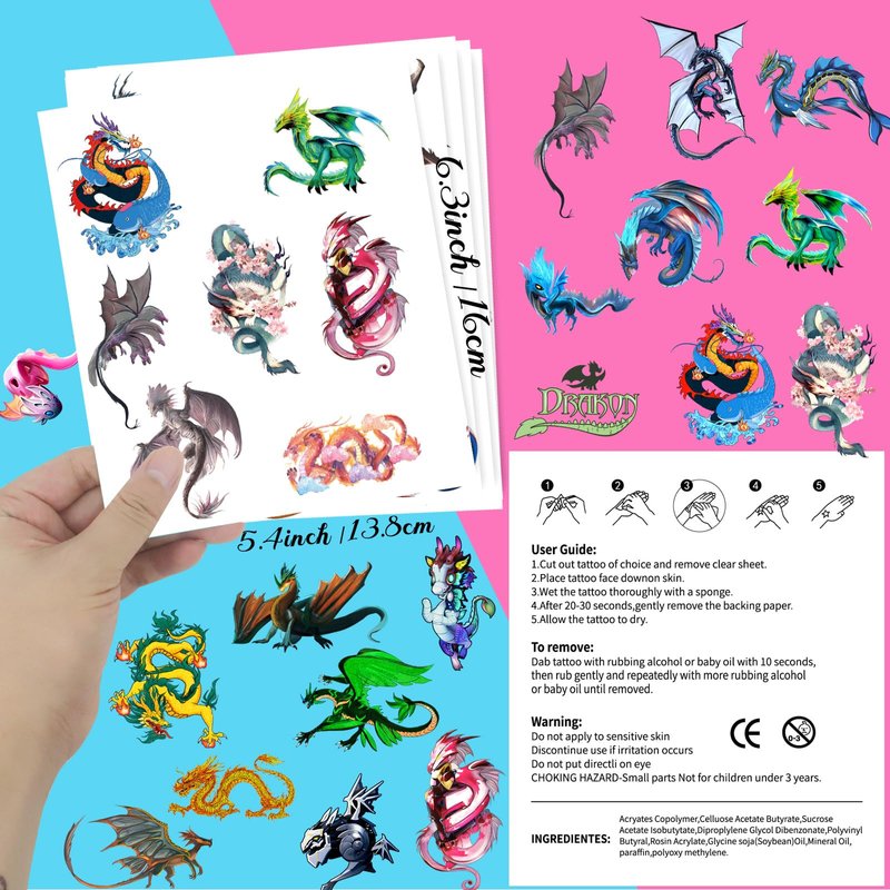 - Friendly to Skin Dragon party decorations,our temporary tattoos have been put through rigorous party testing and are 100% guaranteed to last all day,Non-toxic, harmless and tasteless, the tattoos do not cause irritation