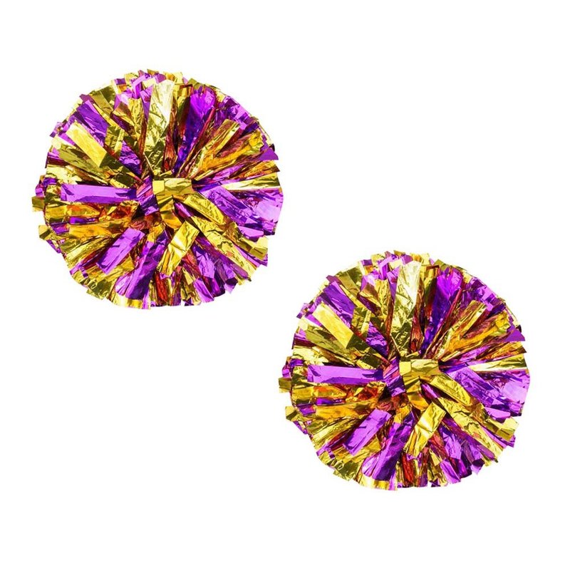 Dragon Troops Set of 2 Beautiful Cheerleading Pom Poms, Cheerleaders Sport Accessories,Purple Golden
