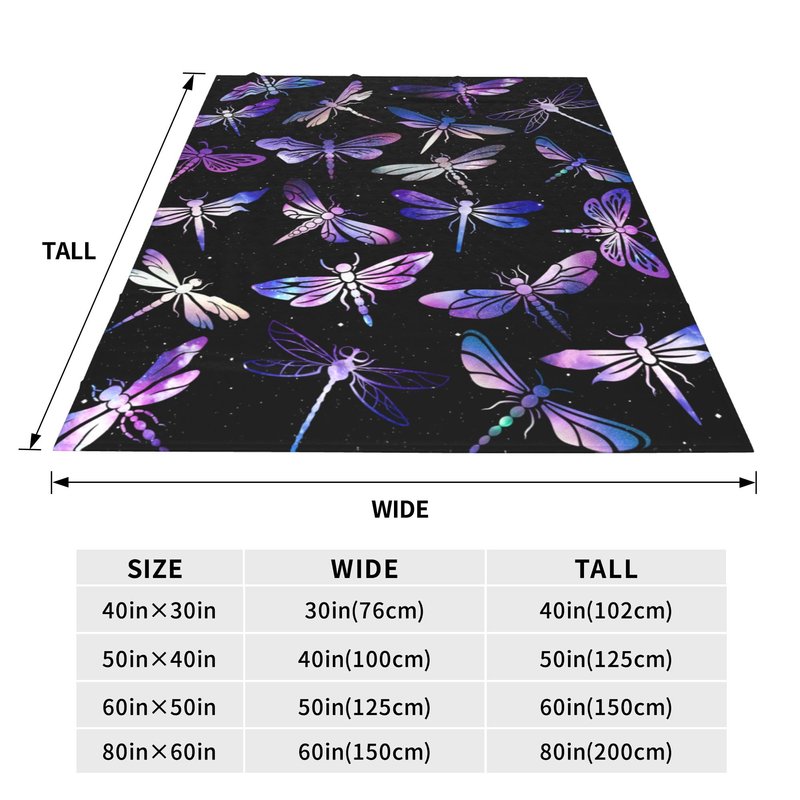 - 【Blanket Size】Please note that we have four sizes, the Dragonfly blanket size is 30" X 40", 40" X 50", 50" X 60", 60" X 80",Four sizes of blankets to fit women, men, babies, kids, dogs, pets and just about anywhere you can think of.