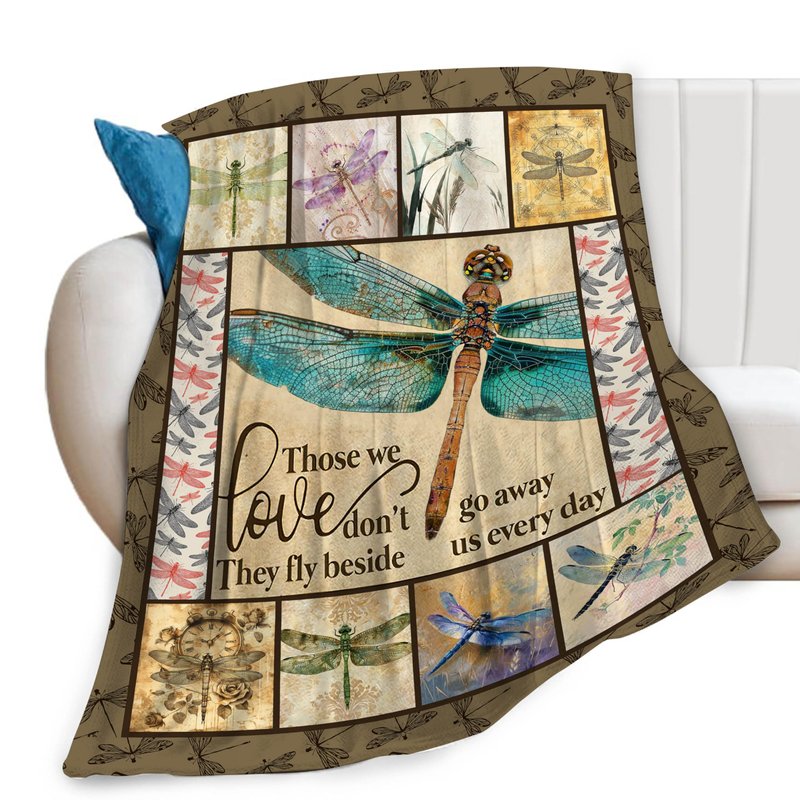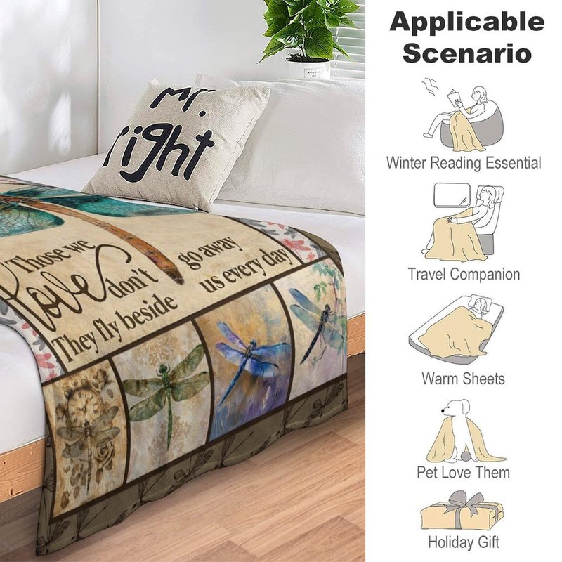 Dragonfly Print Blanket Dragonflies Memorial Throw Blankets Gifts for Couch Sofa Bed Stuff Decor Lightweight Soft Cozy Fleece Plush Warm Flannel Bedding for Lover Men Women Teen Adults 40"x50"