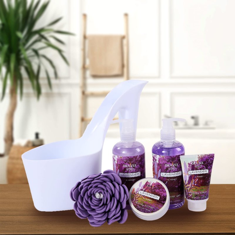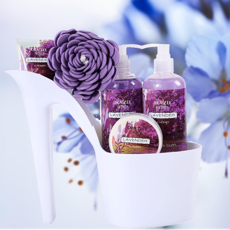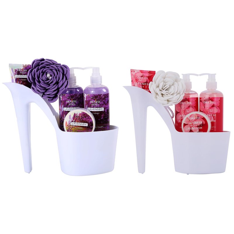 - HAVE YOU EVER SEEN SUCH A UNIQUE SPA BATH SET? Our premium Cherry & Lavender scent spa relaxation baskets has the shape of a high heel shoe, which you can use as storage or decoration or your bathroom, bedroom or any room of your house!