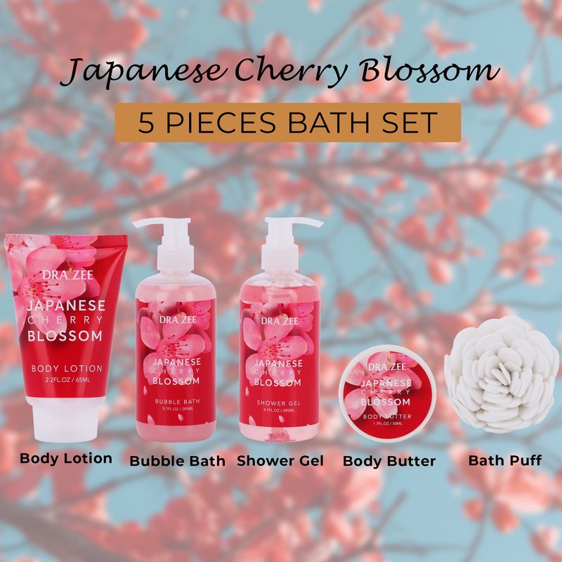 - LET THE AROMA OF 10 PIECES Cherry & LAVENDER RELAX YOU: This stunning bath gift sets includes 10 Pcs of Cherry & Lavender Scented bathing essentials and a bath puff. The bath essentials are a shower gel, a bubble bath, a body butter and a body lotion.